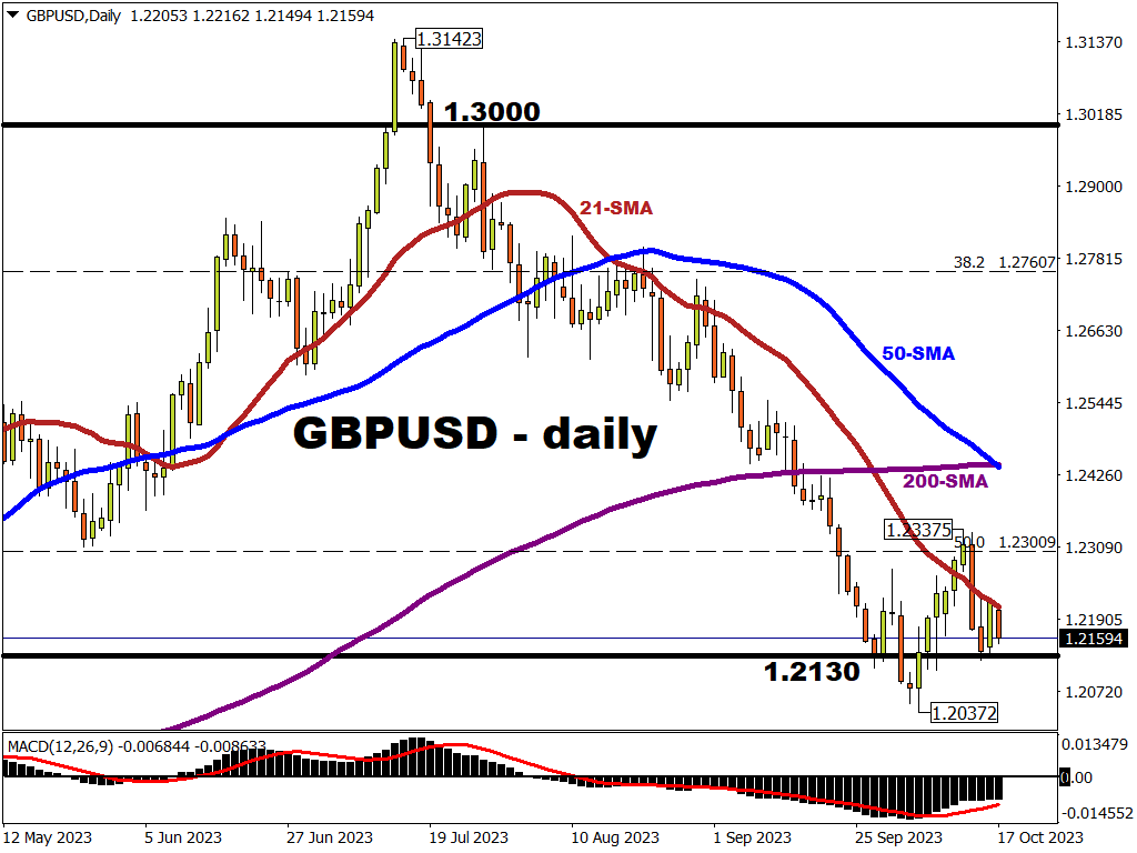 - Lower-than-expected UK inflation data, especially for the core and services CPIs, along with signs of still-resilient US consumer spending, could in turn drag GBPUSD below the 1.2130 support zone.