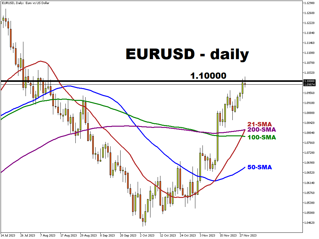 Can EUR/USD push above 1.10 after euro zone inflation data?