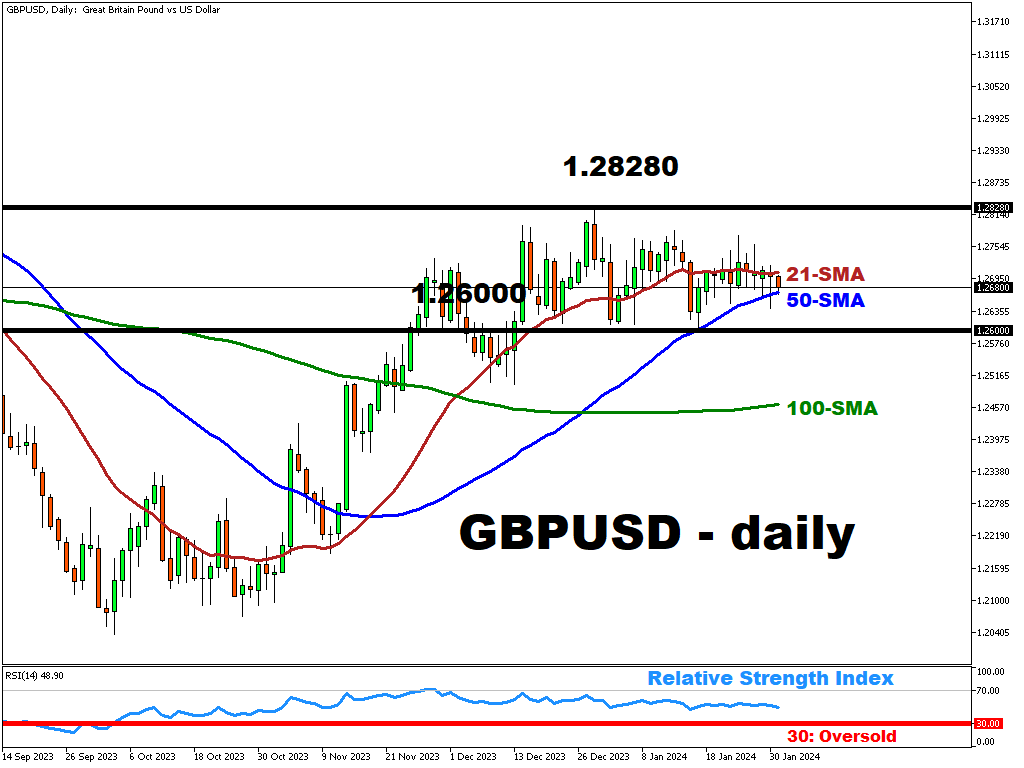 GBP has been the best major currency against the dollar this year. The six-week range in cable of 1.26 to 1.2828 could be challenged over the next few days.