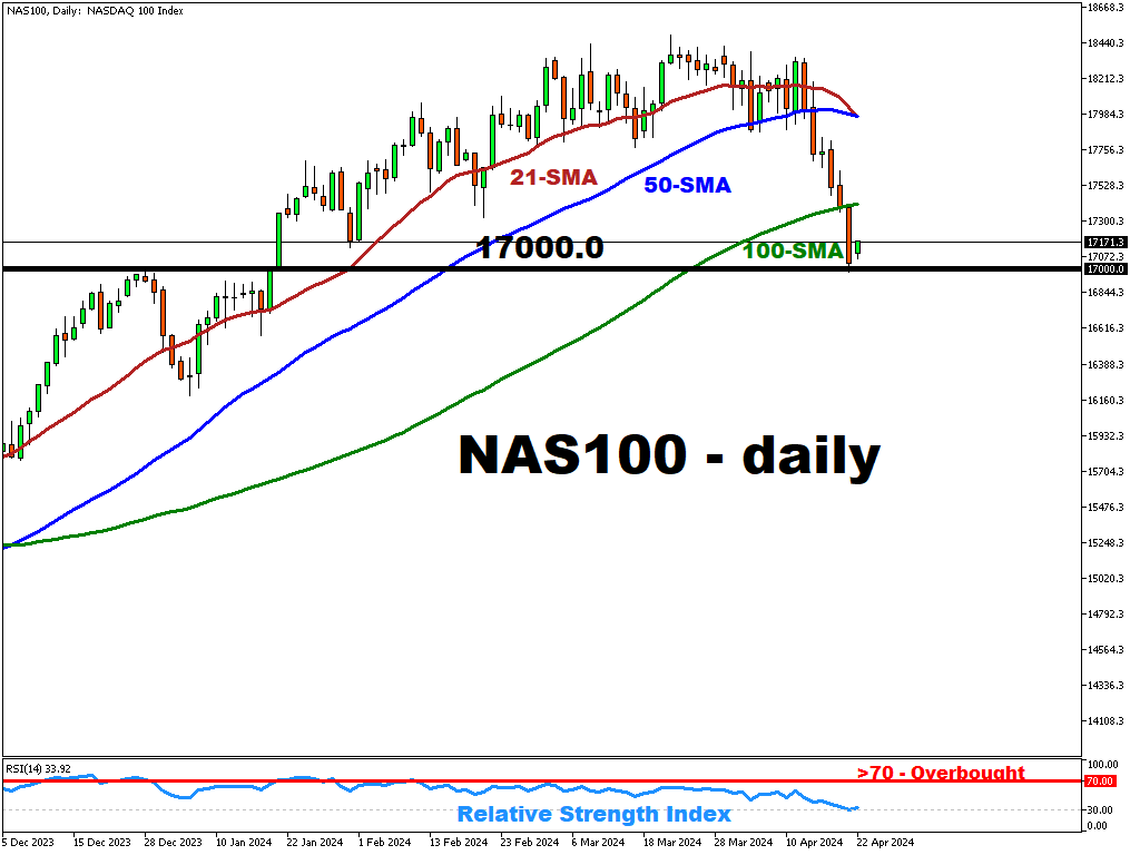 The NAS100 index has fallen in six of the past 7 weeks, as markets push back bets for Fed rate cuts in 2024.